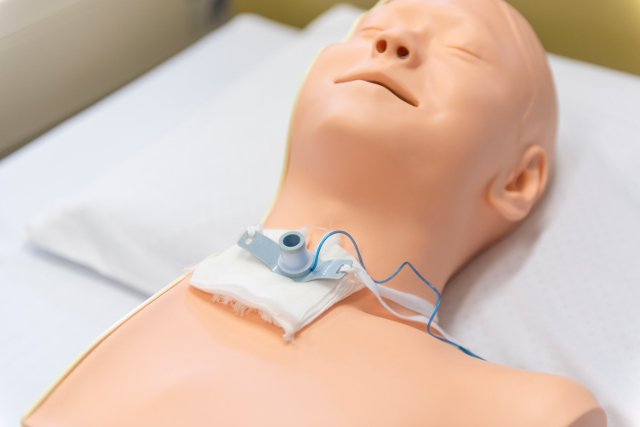 授業にはたんの吸引など医療的ケアの演習も行います。介護現場で求められる専門技術を習得します。