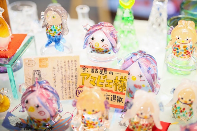 小樽の運河沿いにあるガラス工房。グラスやぐいのみ、雪だるまや“疫病退散”のアマビエなどなど、たくさんの作品がキラキラしています。思わず手に取ってみたくなる作品は、店舗の奥にある工房で創り出されています。