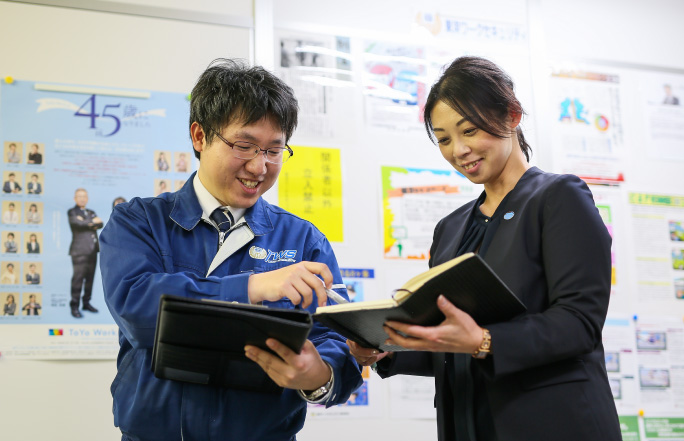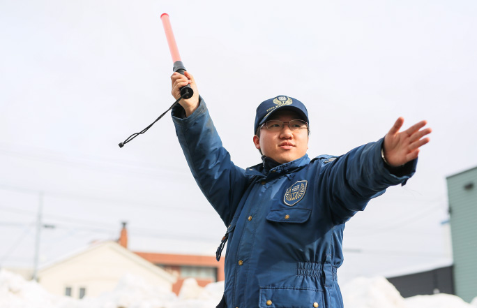 警備隊員の管理業務をしながら、採用活動でも活躍している入社3年目手島優さん。