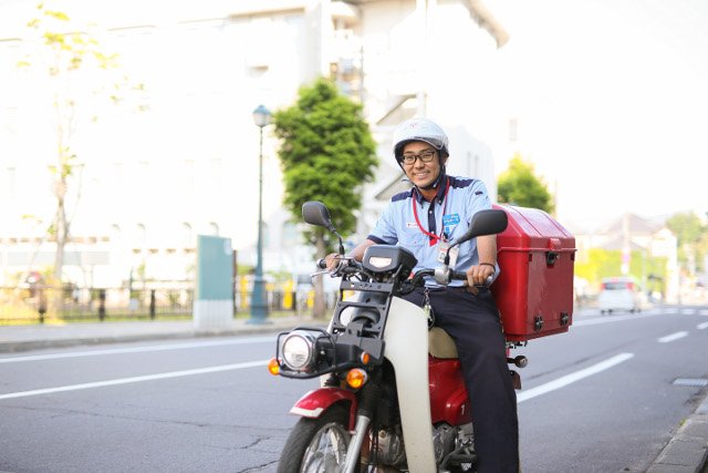 赤いバイクに乗って、夏の暑い日も冬の吹雪の日も手紙を配達してくれる「郵便配達員」。