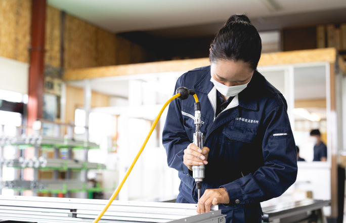 川村さんのお仕事は窓枠として使われるアルミサッシの製作。