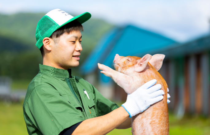 「和豚もちぶた」というおいしい銘柄豚を生産。