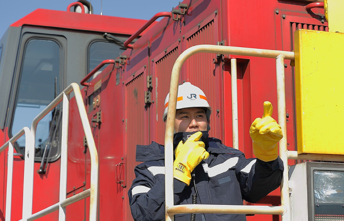 札幌貨物ターミナル駅で活躍中の小袖魁翔(こそでかいと)さんです。