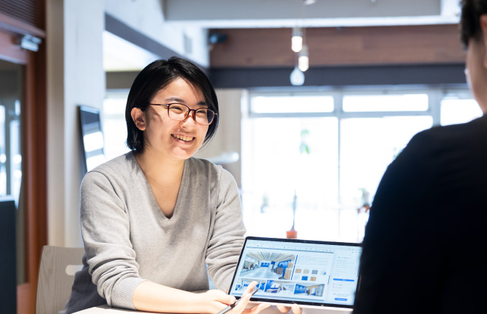 株式会社タケベ 建装事業部で設計アシスタントとして活躍する成田光さん。