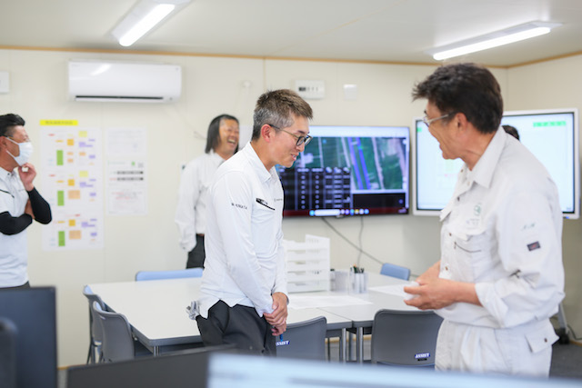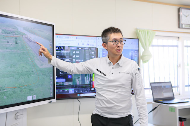 モニターを指し示しながら工事の流れを説明しているのが、沼田将利さんです。