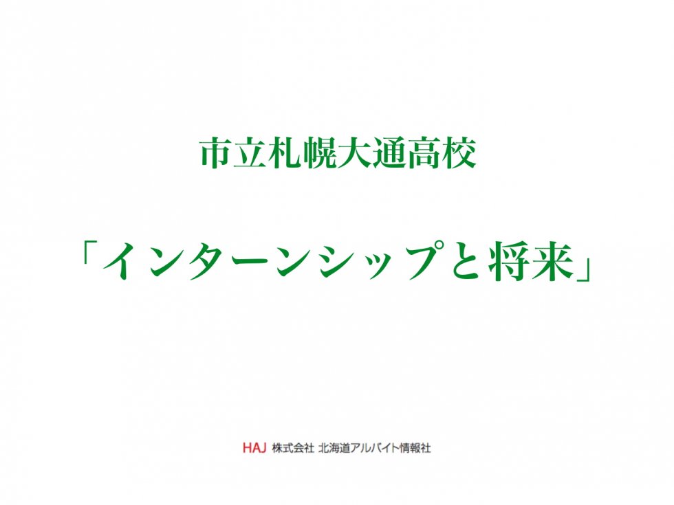 10/11(金)に市立札幌大通高校にて2年生対象の働くことについて学ぶ「産業社会と人間」の授業で、来月行われるインターンシップの事前授業として「北海道 未来のしごとの参考書」のインタビュー記事を使った「インターンシップと将来」という講義を行いました。