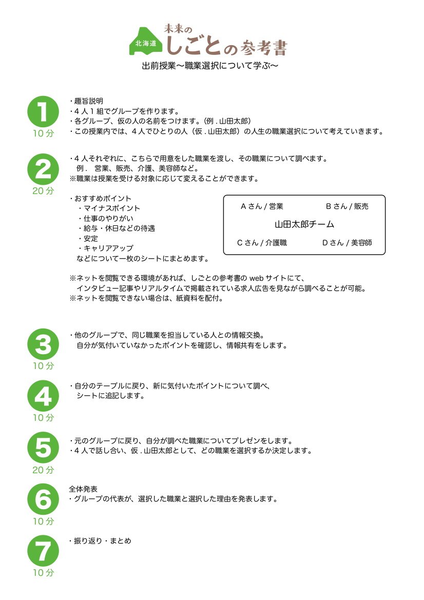 この後、大通高校では、1月に「しごとの参考書」を使った「職業選択について学ぶ」という出前授業も行う予定です。