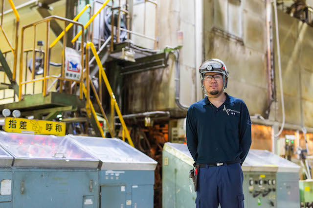 増原さんは、工場内で稼働するいくつもの巨大なマシンが、日々、トラブル無く稼働するように常に監視し、点検を行います。