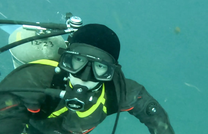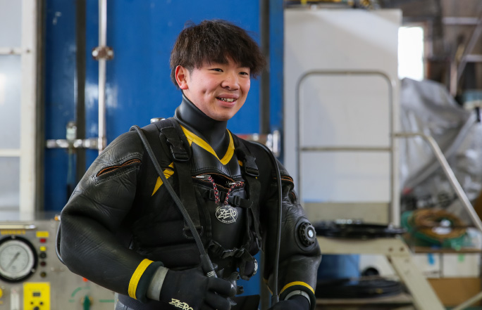 札幌に拠点を置くジオテック株式会社で活躍する潜水士、小林堂偉さんです。