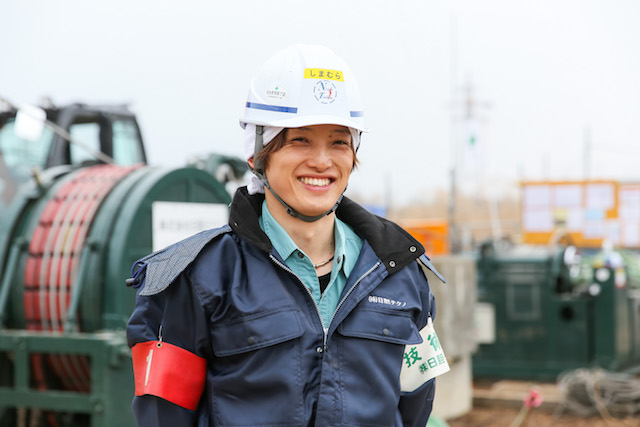 お話を伺った島村さんは送電線建設技術者として10年以上の経験を積み、現在は、現場全体を管理する「代理人」として活躍しています。