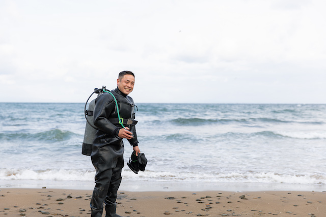 今回お話をうかがったのは、北海道内各地の海で「海洋調査」を行っている潜水士、東山雄太さん。潜水士歴は5年。精悍な雰囲気が、「海を相手に働く人」という印象を強く感じさせます。