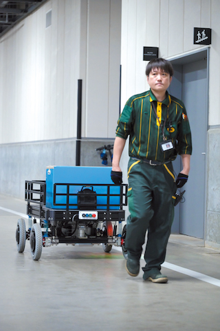 フォークリフトや台車、伴走ロボを駆使し、広大な敷地で荷物の配送を行っています。飲食店向けの食材や飲料、グッズまで、場内のあらゆる運搬を担当。ビール樽を運び、売り子スタッフの背中に装着する作業も行ってるんです。試合時には重さ1,000個以上の樽を扱うため、最大1トンまでけん引できるロボットも活躍しています。