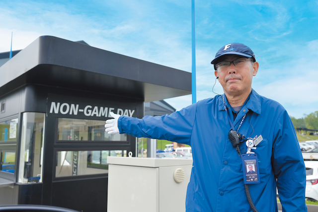 試合日以外にも多くの人が訪れるFビレッジには、焚き火が楽しめるグランピングなどの宿泊施設も備わっています。なので、施設内では24時間体制で警備が行われ、万が一の事態にも深夜を問わず迅速に対応。利用者の安全を陰からしっかりと支えています。