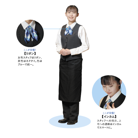 ダイヤモンドクラブシートをご購入いただいたお客様だけがご利用できるラウンジで、受付やホールスタッフへの指示などを担当しています。全日空がスポンサー様なのでユニフォームはCAのイメージを取り入れつつ、上質なおもてなしと親しみを感じていただけるようなデザインとなっています。お客様からの感謝の言葉が、私にとっての最高のごちそうです。
