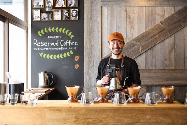 宮の森アルケミストコーヒーの店主、川原英佑さん。