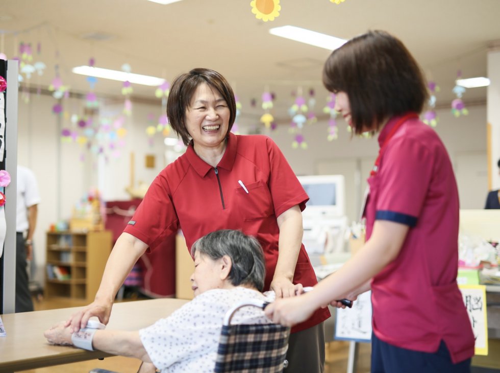 利用者さんの病気が治ってからも、介護職の存在は欠かせません。もとの生活に戻れるように心身両面から明るく優しくサポートする様子には「さすが」という思い。同じチームで働く仲間として、頼りになる存在ですね。