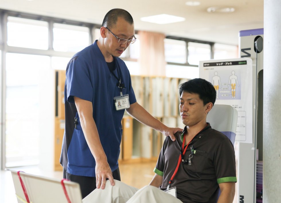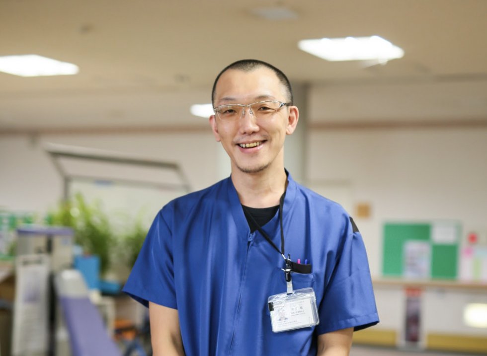 利用者さんの自立をサポートするという使命はリハビリスタッフも介護職も同じだと考えています。ただ、リハビリスタッフの場合、利用者さんと接するのは訓練室にいる時間に限られてしまうのが実情。この施設であれば1日20分から30分程度なので、訓練室の外での生活状況を知るには介護職との協力が不可欠です。例えば「ベッドから立ち上がるのが大変そうだった」という話を聞けば、必要な身体機能を高めるリハビリをメニューに組み込みます。またリハビリは、訓練室に通いさえすれば身体機能が高まるものではありません。訓練室でやったことを日々の生活に落とし込み、日常的に取り組んでいくことが肝心。その際、利用者さんの気持ちやプライドを尊重しつつ、リハビリへの意欲を後押しできるのは介護職の他にはいません。私たちの専門性を発揮するためにも、欠かせないパートナーだと考えています。