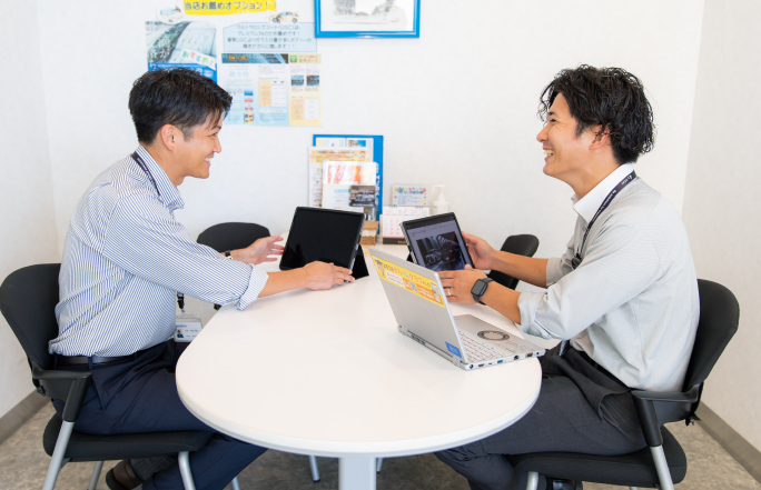 一般に自社の商品やサービスを販売するのが営業の主な仕事。企業向けに販売する法人営業と、個人にセールスする個人営業とに大きく分けられます。とはいえ、商材によってスタイルはさまざま。見込み客を訪問し売り込む新規開拓営業、固定客を中心に訪問し取引するルートセールスなどがあり、扱う金額はもちろん、顧客とのコミュニケーション方法も異なります。また、販売戦略を立てたり、課題を分析したり、時にはお客様先に同行する営業企画を担うことも。営業に共通していえるのは商品やサービスを売上に結びつける、企業にとっての大黒柱!